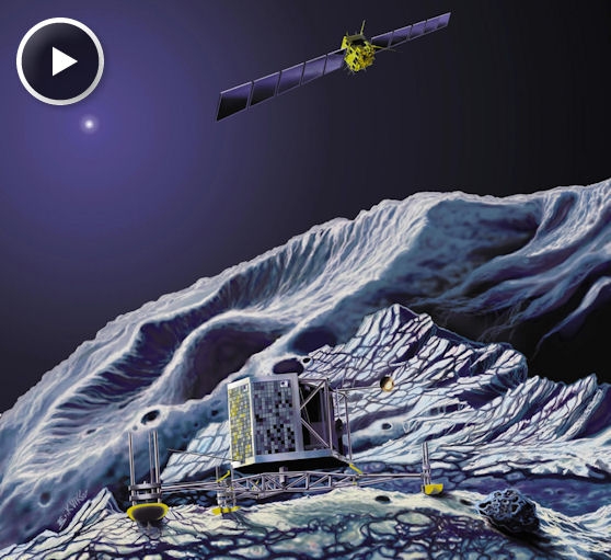 ‘Europe’s Rosetta spacecraft is en route to intercept a comet– and to make history. In 2014, Rosetta will enter orbit around comet 67P/Churyumov-Gerasimenkoand land a probe on it, two firsts.