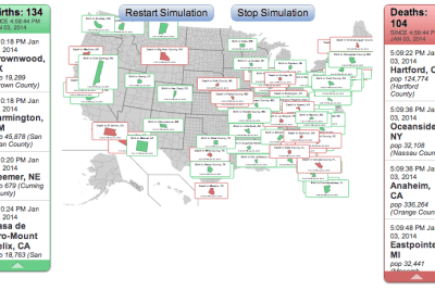 “[The map] can apparently seem to evoke a strange mixture of emotions,” Lyon, the map’s creator, said. “At least for me, it is a bit overwhelming and sobering, and provides some perspective on how big 300 million+ really is. However, if the rates and population counts are correct, something like this is actually happening as I type this. It\s just weird.” ‘ (PolicyMic).