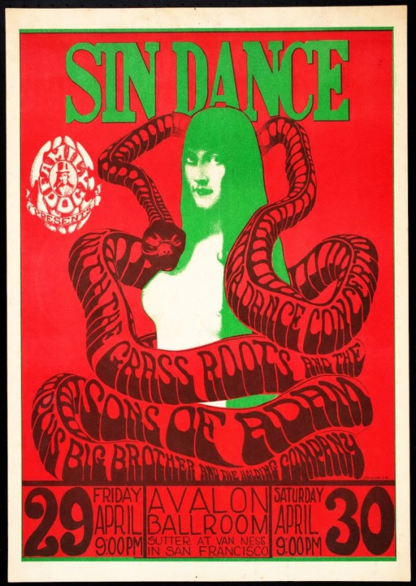Via Boing Boing: ‘Ben Marks explores the history of the psychedelic rock poster.’ Marks is a serious scholar and collector of San Francisco rock poster art and curator of a major exhibit that is now hanging at SFO. This article fascinated me, as someone who is just nuts about this genre of graphics. I had a sizable collection of originals myself, and I have long been kicking myself for losing track of most of my collection in moves over the years. (My brother may have them in storage somewhere…) My favorite artist of the genre? Rick Griffin, without a doubt. Gotta pass through San Francisco while the exhibit is still up…