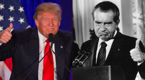‘During the 1968 election, Richard Nixon successfully ran as the candidate of law and order against a backdrop of rising crime and civil unrest. There was then, as there is now, a very unsubtle racial element at play in the statement. In ’68, Nixon plastered Americans’ TVs with images of protests and urban upheaval, urging the nation to “vote like your whole world depended on it.”