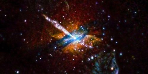 ‘In 2005, a very strange event was observed. An unknown object, not detectable through visible light, released an intense flare of X-rays. It took about a minute for the flare to reach its full brightness, about 90 times brighter than its resting output and about a million times as bright as the Sun. The flare lasted for about an hour before petering out. Four years later, it flared up again.