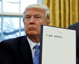 ‘Though Steve Miller claims that Trump is “a president who has done more in three weeks than most presidents have done in an entire administration,” the reality is that almost everything in his executive orders is either an inflammatory restatement of an existing policy; an unenforceable and meaningless intervention into domains where the administrative branch holds no sway; or (as in the case of the Muslim Ban), is an unconstitutional omnishambles destined to be swiftly undone by the courts…