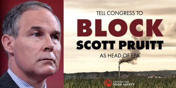The Senate is scheduled to vote on Pruitt’s confirmation as EPA head tomorrow. Please take just a minute to call and email your Senators and urge them to vote NO on Scott Pruitt for EPA! Call the Capitol switchboard at (202) 224-3121 to be connected with the Senate office of your choice. Don’t know who your Senators are? Look them up here.