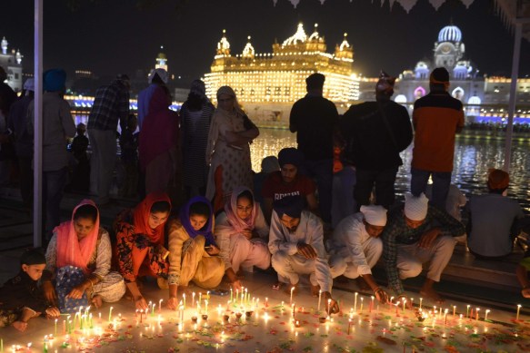 ‘Indian Sikh devotees light candles to mark Bandi Chhor Divas, or Diwali, at the Golden Temple in Amritsar on October 19th, 2017. Also known as the festival of lights, Diwali is the biggest festival celebrated by Hindus, Sikhs, and Buddhists around the world.’