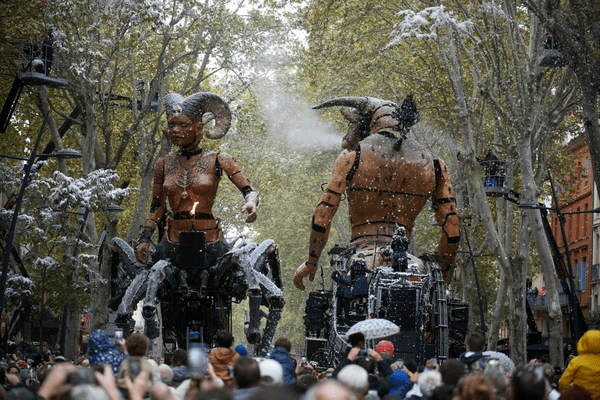 ‘Over the past three days, the streets of Toulouse, France, hosted an urban opera titled The Guardian of the Temple—The Gates of Darkness, in which three massive robotic puppets of mythological creatures—Lilith the scorpion woman, Asterion the Minotaur, and Ariane the spider—performed in several locations around the city. The show, put on by the French street-theater company La Machine, was directed by François Delarozière….’ (via The Atlantic)