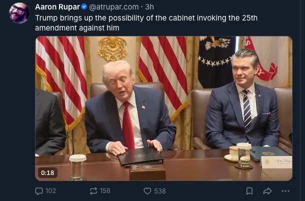 ‘The Orange Menace was on a tear. Even his cabinet members couldn’t help but stare at his stream-of-consciousness rant. The convicted felon went on to say that if he shared his incredible plans for the war he has on again, off again declared over with Iran, he’d be removed from office for incompetence.…’ (Jason Weisberger via Boing Boing)