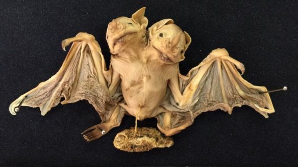‘…[R]esearchers at the Universidade Federal Rural do Rio de Janeiro published a study on a pair of conjoined bat twins discovered in southeastern Brazil back in 2001. The animals were dead when they were discovered, which is almost always the case with animals born with a rare condition that results in two heads on a single body…’